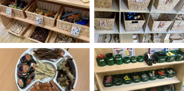 For example, we use sorting hoops or sorting trays for children to group items by colour, shape, size, use etc.